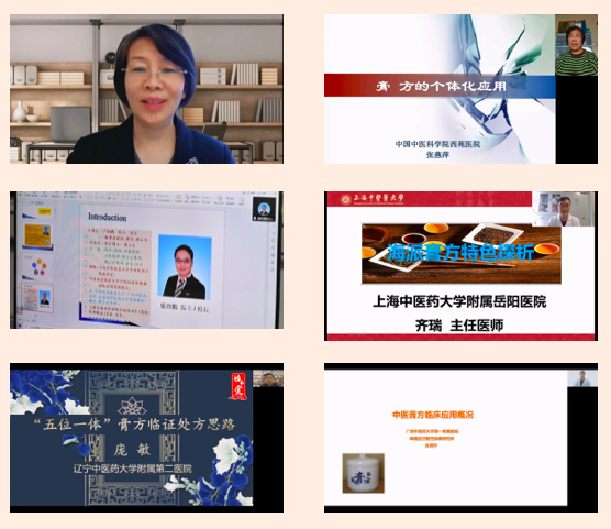 開幕式結(jié)束后,大會(huì)開展了線上學(xué)術(shù)報(bào)告和學(xué)術(shù)交流活動(dòng)。董瑞會(huì)長做了《中醫(yī)膏方概論》的學(xué)術(shù)報(bào)告;北京中醫(yī)藥大學(xué)蘇慧萍教授、中國中醫(yī)科學(xué)院西苑醫(yī)院張燕萍教授、港澳臺(tái)中醫(yī)醫(yī)師聯(lián)合促進(jìn)會(huì)總會(huì)會(huì)長盧致鵬教授、上海中醫(yī)藥大學(xué)岳陽中西醫(yī)結(jié)合醫(yī)院齊瑞教授、遼寧中醫(yī)藥大學(xué)附屬第二醫(yī)院龐敏教授、廣西中醫(yī)藥大學(xué)第一附屬醫(yī)院賓博平教授六位中醫(yī)膏方專業(yè)委員會(huì)副會(huì)長分別作了《膏方防治慢阻肺的組方用藥特點(diǎn)》《膏方的個(gè)體化應(yīng)用》《脾胃系統(tǒng)(慢性胃炎疾?。┑闹形麽t(yī)論述臨床觀察與證型研究》《海派膏方的特點(diǎn)》《膏方臨床應(yīng)用思路》《中醫(yī)膏方臨床概論》的學(xué)術(shù)報(bào)告,并與在線專家學(xué)者進(jìn)行了互動(dòng)交流。中醫(yī)膏方專業(yè)委員會(huì)第二屆理事會(huì)換屆會(huì)議暨第五屆學(xué)術(shù)年會(huì)取得了圓滿成功。