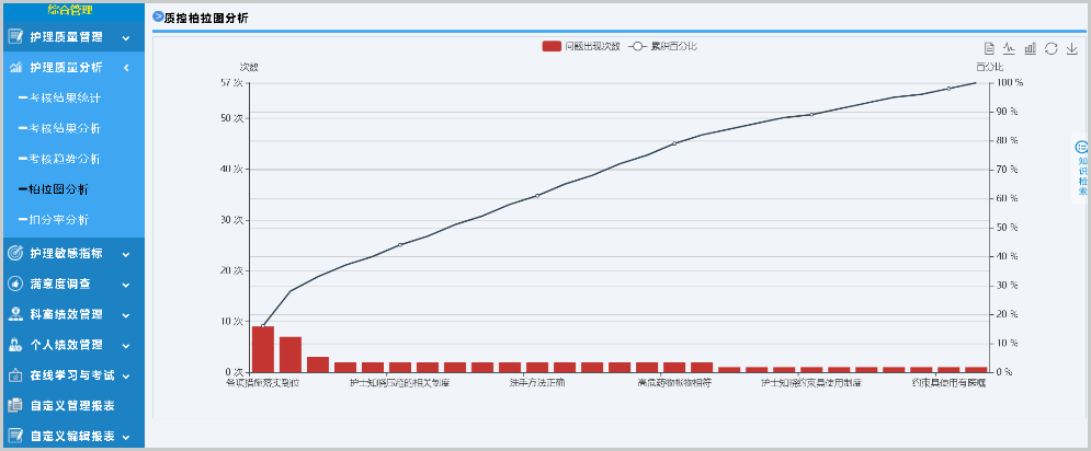針對護(hù)理質(zhì)量管理重點,支持自定義質(zhì)控表單,使用評分、扣分等多種考核方式,電子化護(hù)理質(zhì)量考核、持續(xù)跟蹤記錄,并可以用于統(tǒng)計分析。