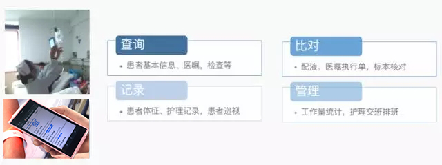 醫(yī)院的護(hù)士在日常操作中,每個(gè)環(huán)節(jié)都通過移動(dòng)護(hù)士去記錄。在此過程中,移動(dòng)護(hù)士會(huì)將護(hù)士的記錄工作,加上一些系統(tǒng)限制。如護(hù)士檢查患者的輸液信息,現(xiàn)階段大多是通過人工去核對(duì),而使用移動(dòng)護(hù)士,可以直接掃碼核對(duì)。同時(shí),移動(dòng)護(hù)士會(huì)強(qiáng)制要求患者的輸液瓶簽和患者腕帶之間一一對(duì)應(yīng),這就相當(dāng)于增加了一個(gè)自動(dòng)化的識(shí)別判斷,讓更換過程又快又準(zhǔn)。