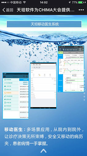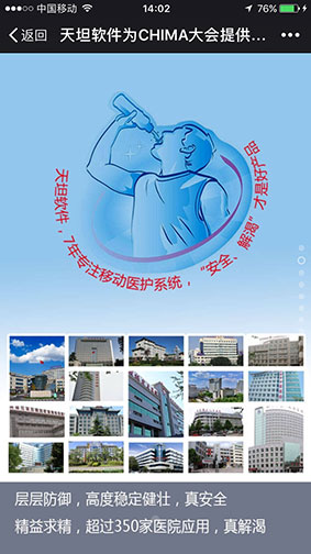 通過這樣一年一度高規(guī)格的國家級盛會,加強了移動醫(yī)療行業(yè)的交流與合作,推動了移動醫(yī)療產(chǎn)業(yè)健康可持續(xù)發(fā)展。同時激勵著天坦軟件要為移動醫(yī)療做出更大的貢獻,正如與會專家對天坦軟件的評價一樣 “渴了就喝天坦特供水,“天然、健康、安全、解渴”的產(chǎn)品,才是好產(chǎn)品”。