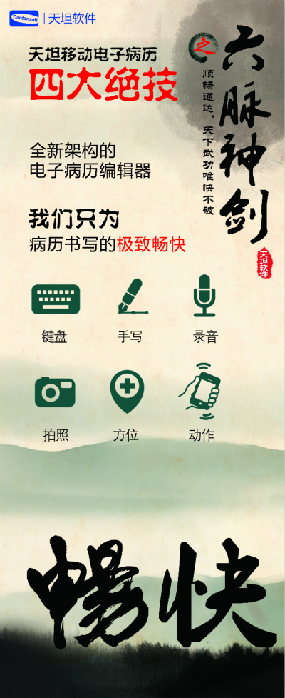 天坦軟件,作為國內(nèi)移動電子病歷的先行者,盛裝亮相京交會。在會上展示了以“天坦移動電子病歷”為核心的醫(yī)院整體信息化系統(tǒng),受到眾多參觀者的關(guān)注。天坦軟件始終堅持以“讓天下沒有難看的病”為宗旨,致力于醫(yī)療事業(yè)發(fā)展。為中國醫(yī)療衛(wèi)生行業(yè)的信息化建設(shè)以及個人健康服務(wù)提供從硬件到軟件、從技術(shù)到服務(wù)的全面解決方案,是中國醫(yī)療信息化市場中快速成長的獨立軟件廠商之一。數(shù)年來,一直堅持研發(fā)以移動電子病歷為核心的醫(yī)院信息化系統(tǒng),從移動框架的病歷編輯器到跨平臺的移動醫(yī)療解決方案,為整個病歷信息化行業(yè)注入了極強的創(chuàng)新活力。 “天坦移動電子病歷”為核心的醫(yī)院整體信息化系統(tǒng)秉承“高效應(yīng)用、信息互通”的基本理念,是專門為醫(yī)院設(shè)計開發(fā)的醫(yī)療信息化系統(tǒng)的核心組成部分。具有高效、安全、穩(wěn)定、易用、移動、智能等特點,除此之外,還具有穩(wěn)定、完全跨平臺運行、功能強大、系統(tǒng)性能卓越等巨大優(yōu)勢。