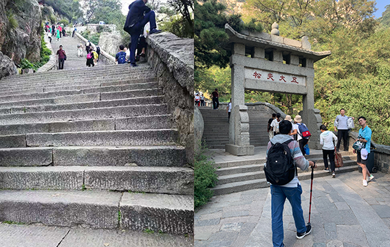 眼前泰山的巍峨,綠意蔥蔥的容貌,隨山勢而上的臺階,讓大家由衷贊嘆。大家摩拳擦掌,誓要做登頂?shù)谝粋€人,去感受那“浮在云霧中,一覽眾山小”的趣意。事實上,這個海拔1524米的天然氧吧給我們的肺的確做了一個很棒的spa,從內(nèi)到外的舒暢,從外到內(nèi)的滿足,感嘆工匠們巧奪天工的設計。