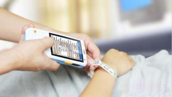 5月15日,記者來到心內(nèi)科病房時(shí),孫洪巧正拿著移動(dòng)護(hù)理終端(PDA)巡房。只見她拿著PDA在病人手腕上一掃,然后把量好的體溫、血壓數(shù)據(jù)輸入PDA,巡房工作就完成了,速度之快連病人都有些不習(xí)慣。