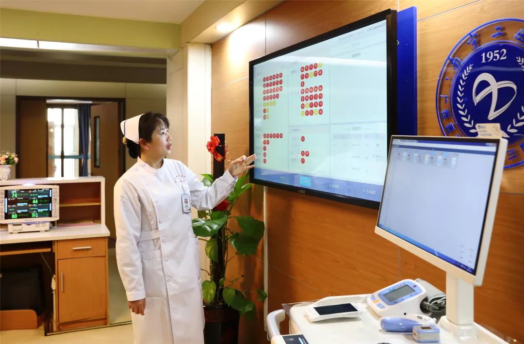 護(hù)士站的智慧交互大屏成為整個病區(qū)的信息中心,院內(nèi)數(shù)據(jù)互聯(lián)互通,每位患者的重要信息都能被及時關(guān)注到。